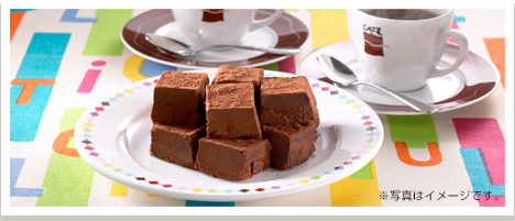 - 3.(2)をラップからはずしココアをまぶす。包丁を温め2cm角の正方形に切り皿に盛りつける。